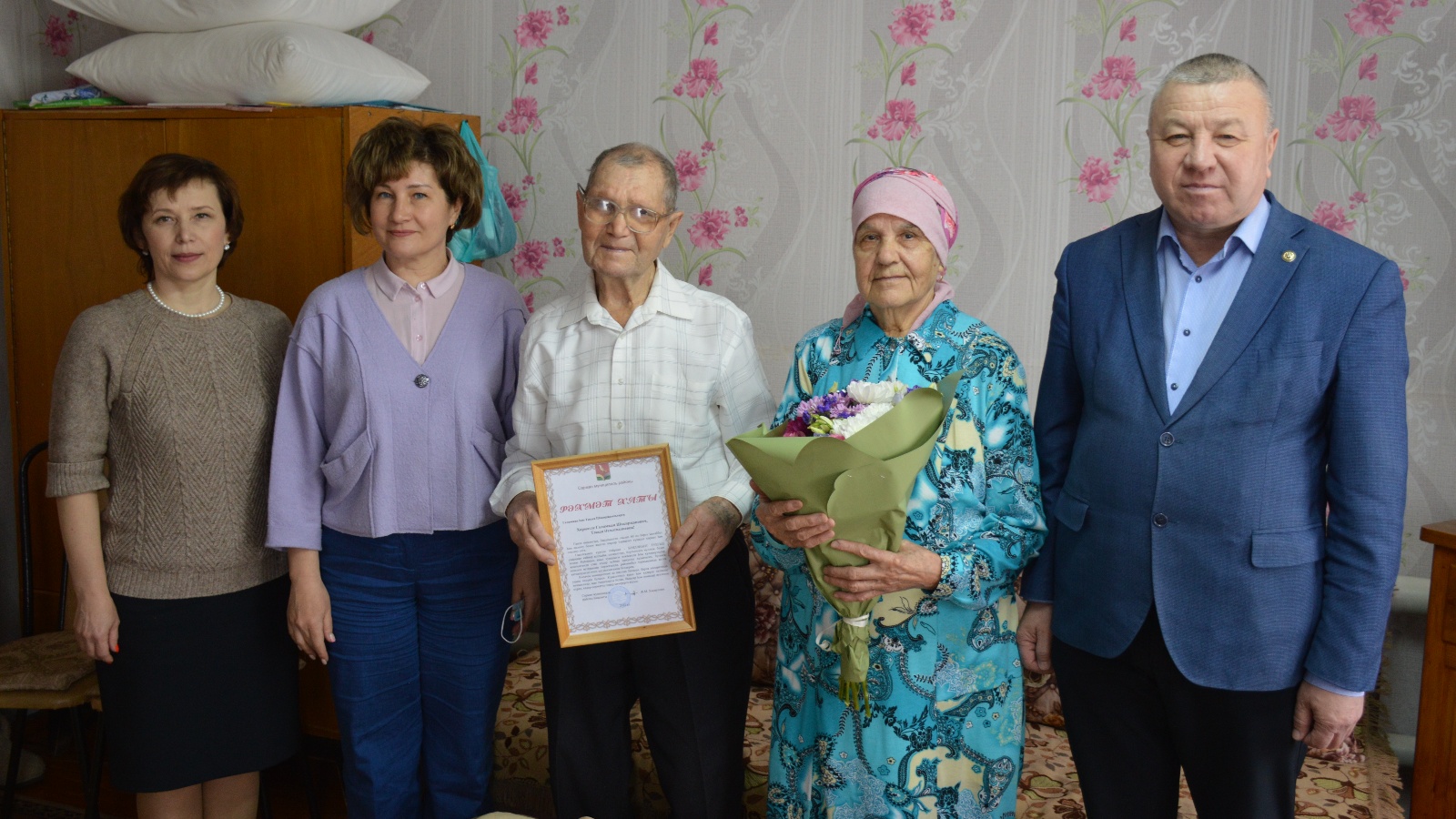 29 март көнне Сарман районы башлыгы Фәрит Хөснуллин Мөхәррәм һәм Вәсилә Фәйзуллиннарны алтын туйлары белән, Галимҗан һәм Тәкыя Шакирҗановларны бриллиант туйлары белән котлады. Үзенең изге теләкләрен җиткерде, мондый парларга тигезләнергә һәм һәр көнне алардан зирәклек һәм гаилә тормышы сәнгатенә өйрәнергә кирәклеген билгеләп үтте. Котлауларга муниципаль район башкарма комитеты җитәкчесе урынбасары Индира Сәхипова, ГХАТ бүлеге җитәкчесе Гөлчәчәк Вәлишина, туганнары һәм якыннары да кушылды. Юбилярларга муниципаль район Башлыгының Рәхмәт хаты һәм истәлекле бүләкләр тапшырылды.