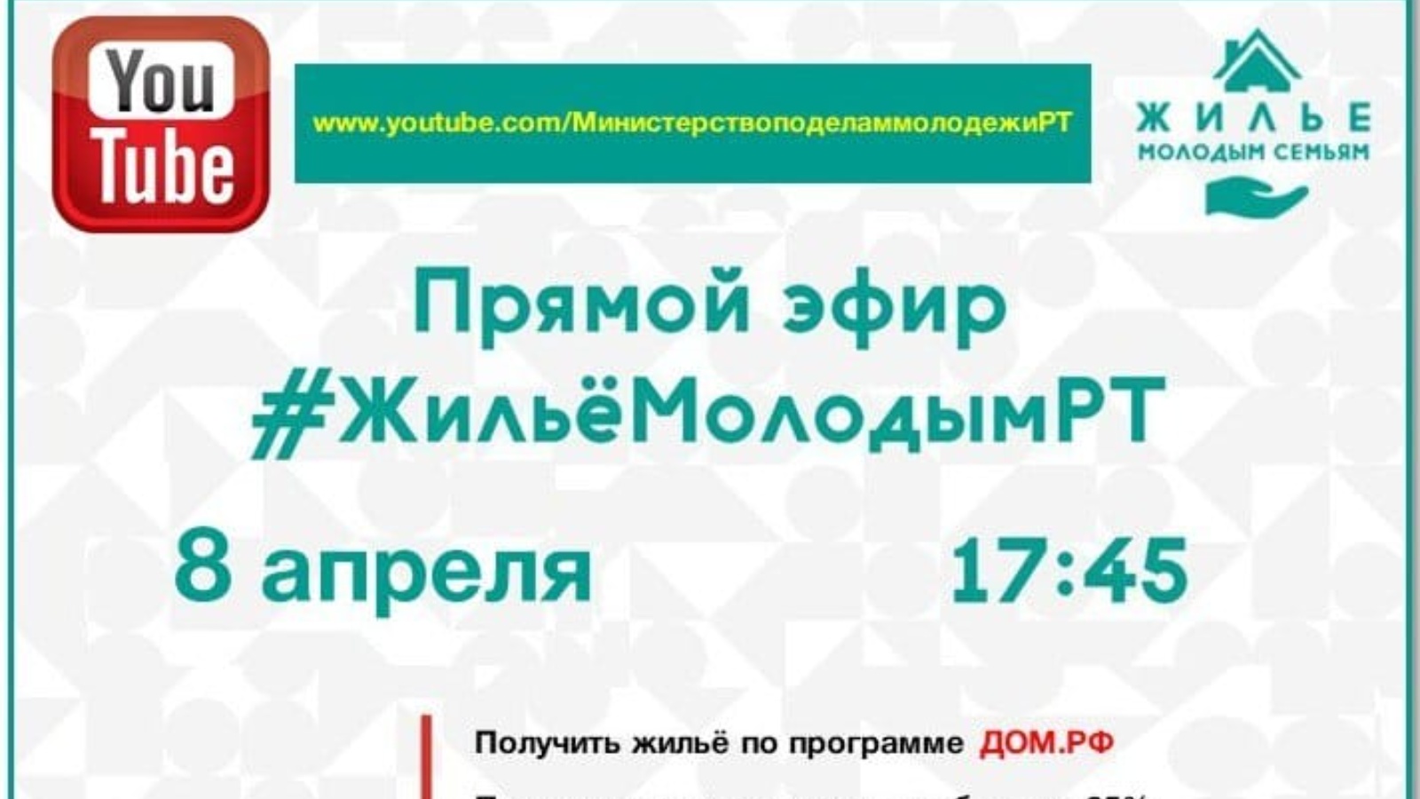 Турыдан-туры эфир кысаларында 8 апрельдә барлык катнашучылар һәм тамашачылар торак шартларын яхшыртуда яшьләргә ярдәм итү буенча федераль һәм республика чаралары буенча экспертларга һәм белгечләргә сорауларын бирә алачак – ТР Яшьләр эшләре буенча министрлыгының YouTube каналында үз сорауларын бирергә мөмкин.