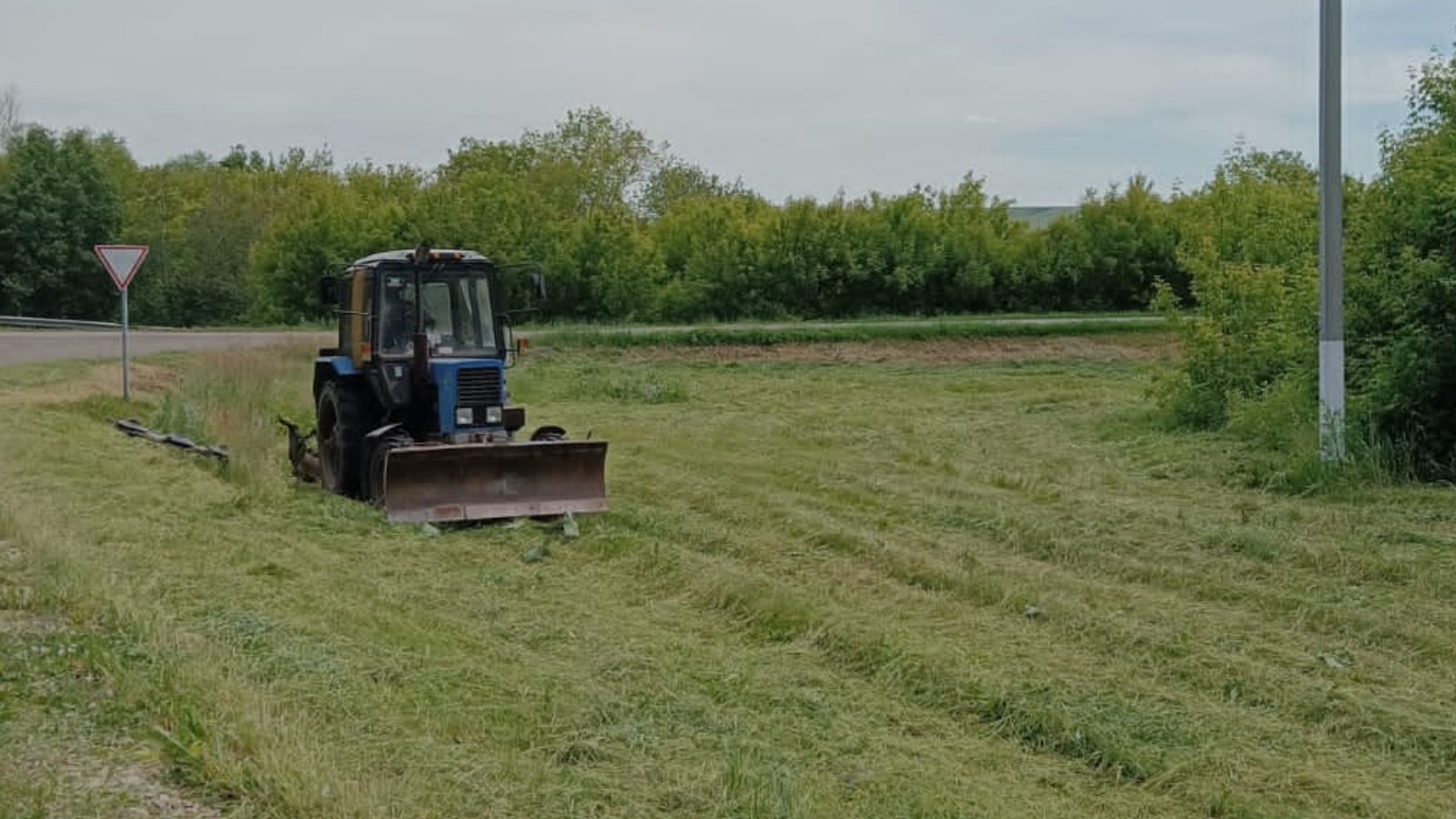 Югары Чыршылы авыл җирлеге территориясендә юл буйларын чабу эшләре бара.
