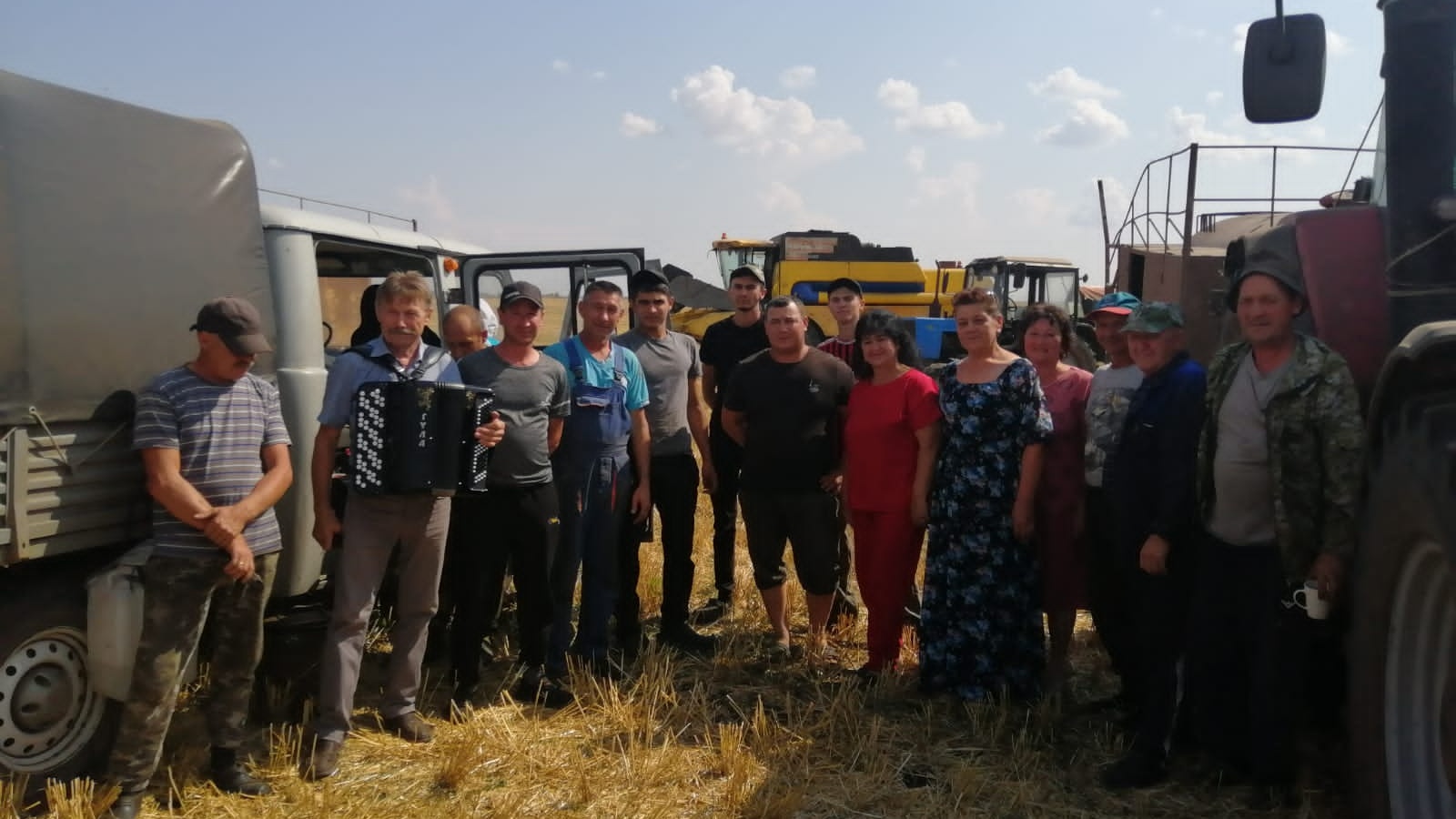 Бүген Сарман мәдәният йорты агитбригадасы төркеме, алдынгыларга ярдәм итү һәм аларның яхшы кәефен күтәрү өчен, механизаторлар алдында чыгыш ясады.