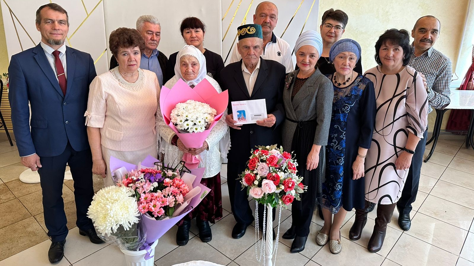 Район башлыгы Хөснуллин Фәрит Мөнәвир улы исеменнән юбилярны район башлыгы урынбасары Гәрәева Гүзәл Рифкать кызы котлады, ул юбилярга Россия Федерациясе Президенты Владимир Путинның Котлау хатын һәм истәлекле бүләк тапшырды. Юбилярны Җәлил шәһәр тибындагы поселогы башкарма комитеты җитәкчесе Илшат фикс улы Галләмов һәм Саклык банкының 8610/0333 номерлы өстәмә офис җитәкчесе Хәйдәрова Гүзәлия намус кызы шулай ук котладылар.