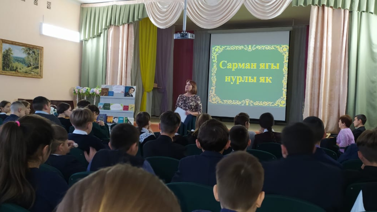 16 ноябрь көнне Сарман үзәк китапханәсе хезмәткәрләре Сарман гимназиянең 7 сыйныф укучылары өчен «Сарман ягы нурлы як» исеме астында тематик кичә үткәрделәр. Кичә туган ягыбызга, районыбыздан чыккан язучылар, шагыйрләр, сәнгать әһелләренә багышланды. Кичә барышында видеоязмада «Сарманым», «Чыгарсыңмы каршы алырга» дип исемләнгән җырлар яңгырады. Китапханәче Энҗе Шаехова укучыларга Клара Булатова, Вәсимә Хәйруллина шигырьләрен укып ирештерде. Укучылар бик теләп Әзһәр ага Габидинең табышмакларын, шарадаларын чиштеләр. Аларга «Сарман әдипләр иле» дип исемләнгән китап күргәзмәсе тәкъдим ителде, китапханәче Ильмира Нигматуллина ясаган презентация күрсәтелде. Кичәне әзерләде һәм алып барды китапханәче Рәзинә Гарифуллина.