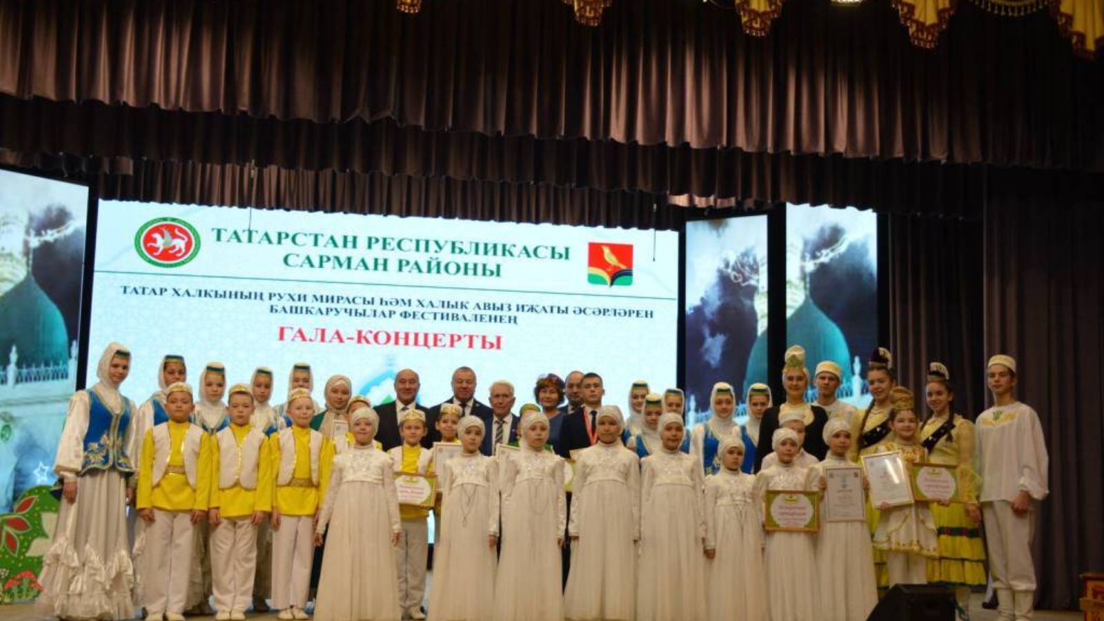 Гала-концертта катнашучыларга дипломнарны һәм истәлекле бүләкләрне Татарстан Республикасы Дәүләт Советы Рәисе урынбасары, Татарстан Республикасы Президенты каршындагы татар телен һәм Татарстан Республикасында яшәүче халыклар вәкилләренең туган телләрен саклау һәм үстерү мәсьәләләре комиссиясе рәисе Марат Әхмәтов һәм муниципаль район башлыгы Фәрит Хөснуллин тапшырды.