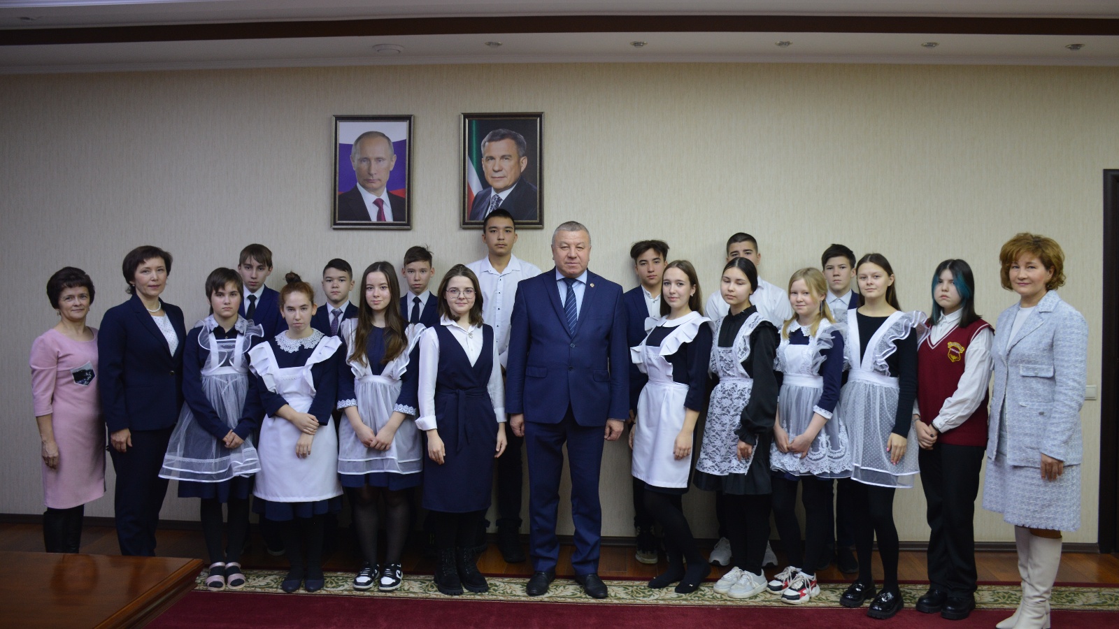 Чара алдыннан Башкарма комитеты җитәкчесе урынбасары Индира Сәхипова укучылар белән район башлыгы кабинетында, гражданлык хале актларын теркәү, балигъ булмаган балалар белән эшләү һәм аларның хокукларын яклау комиссиясе бүлекләрендә әңгәмә һәм экскурсия үткәрде. Россия Федерациясе Конституциясе, вәкиллекле һәм башкарма хакимият, Дәүләт флагы, Россия Федерациясе һәм Татарстан Республикасы гербы, Сарман муниципаль районының флагы һәм гербы белән таныштырды. Видеоконференция режимында республика һәм ведомство утырышлары уза торган кече утырышлар залын күрсәтте. Укучылар Район башлыгына үзләрен кызыксындырган сорауларны бирделәр, аларга Фәрит Мөнәвир улы бик теләп җавап бирде. Ул билгеләп үткәнчә, тормышта максатлар кую һәм күп эшләргә кирәк. Балаларга уңышлар, сәламәтлек һәм ныклы дуслык теләде.