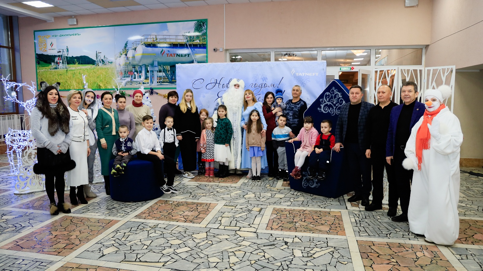Балаларны һәм аларның әти-әниләрен якынлашып килүче Яңа ел белән Сарман муниципаль районы башлыгы урынбасары Гәрәева Г.Р., «Шәһәр тибындагы Җәлил поселогы» муниципаль берәмлеге башлыгы Кәримов Р.А., «Татнефть» ГАҖ ҮБ Сарман районы буенча ЦСП җитәкчесе урынбасары Афзалтдинов Т.Н. һәм Җәлил территориаль беренчел профсоюз оешмасы рәисе урынбасары Мөхәммәтҗанов А.Х.