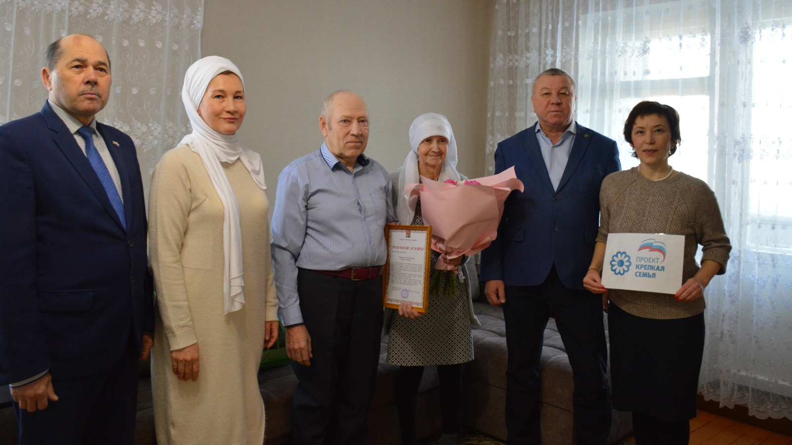 "Ныклы гаилә" проекты, " Гаилә. Район башлыгы Фәрит Хөснуллин юбилярларны алтын туйлары белән котлады. Юбилярларга Башкарма комитет җитәкчесе урынбасары, район хатын-кызлар советы рәисе Индира Сәхипова, ЗАГС бүлеге җитәкчесе Гөлчәчәк Вәлишина, ветераннар Советы Рәисе Асыляр Харисов туганнары һәм якыннары үзләренең изге теләкләрен җиткерделәр. Зәкәриевларга муниципаль район Башлыгының Рәхмәт хаты һәм озак елларга ныклы сәламәтлек, туганнарыбызның һәм якыннарыбызның хөрмәте теләп истәлекле бүләкләр тапшырылды.
