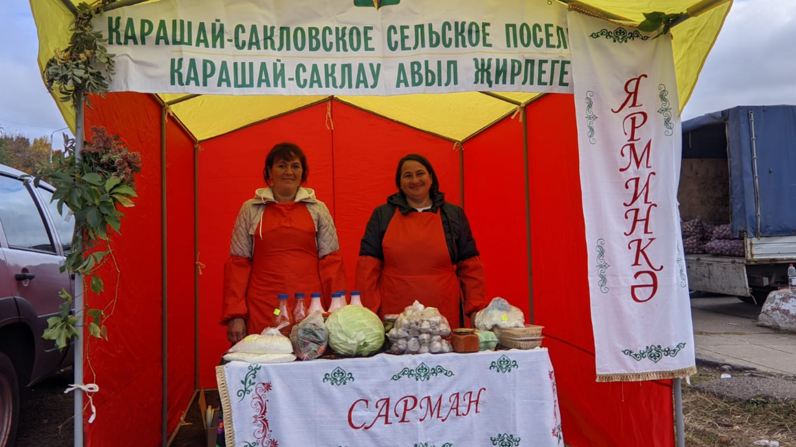 Бүген Сарман муниципаль районы Яр Чаллы шәһәрендәге ярминкәдә авыл хуҗалыгы җитештерүчеләренең товарларын тәкъдим итә. Теләүчеләрне кайнар чәй һәм блиннар белән сыйлыйлар.