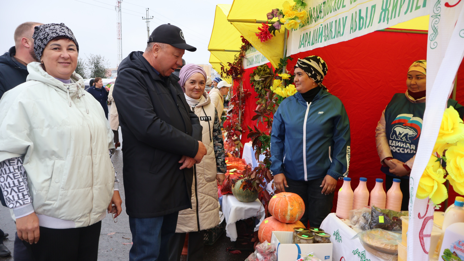 Ярминкәгә район башлыгы Фәрит Хөснуллин килде, тәкъдим ителгән ассортимент һәм бәяләр белән танышты.