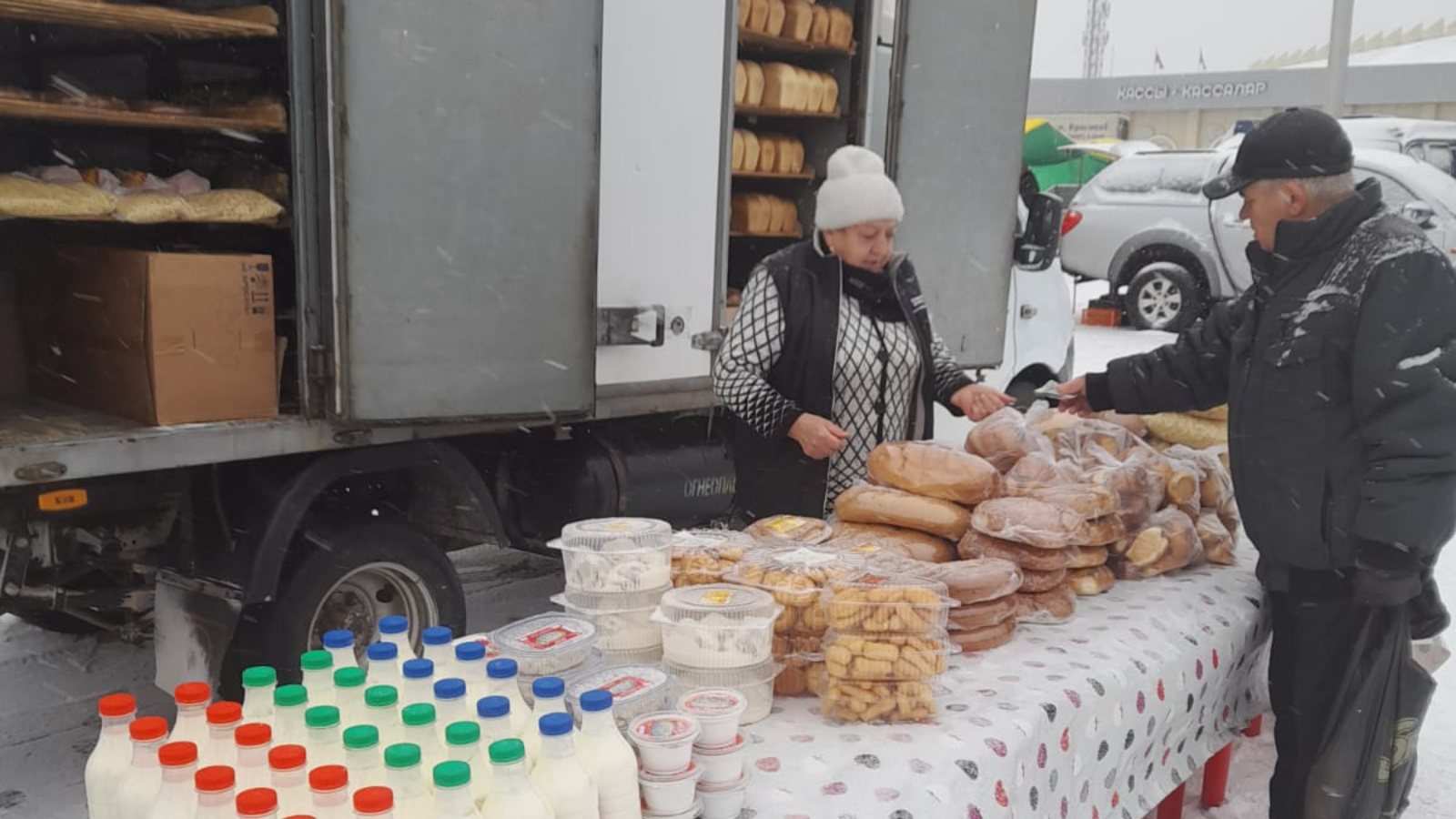Бүген Сарман муниципаль районы Яр Чаллы шәһәрендәге ярминкәдә авыл хуҗалыгы җитештерүчеләренең товарларын тәкъдим итә.