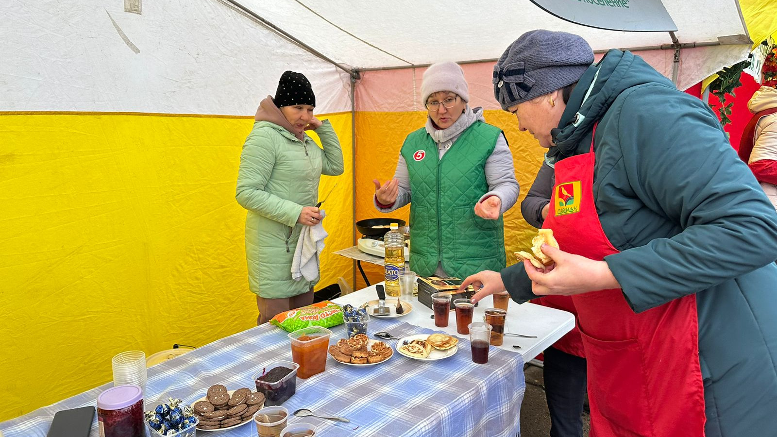 Бүген Сарман муниципаль районы Яр Чаллы шәһәрендә узган ярминкәдә авыл хуҗалыгы җитештерүчеләренең товарларын тәкъдим итә һәм традиция буенча теләүчеләрне кайнар чәй һәм коймак белән сыйлыйлар.