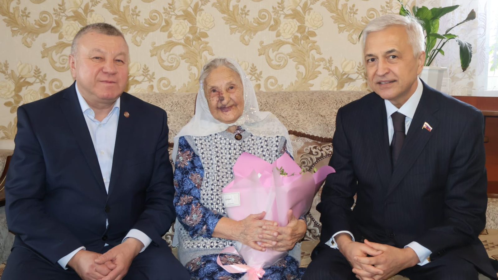 Сарман муниципаль районы башлыгы Фәрит Мөнәвир улы Хөснуллин, Россия Федерациясе Дәүләт Думасы депутаты Азат Фердинанд улы Ягафаров районның озак гомерле хатын-кызын котладылар