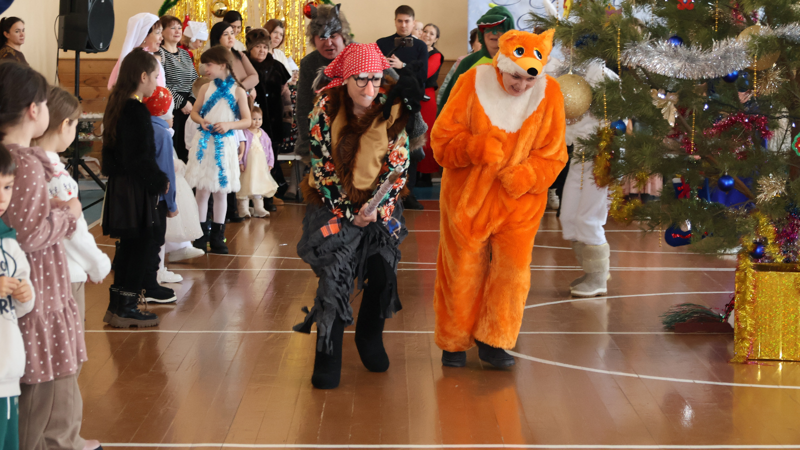 Балалар тамашаны рәхәтләнеп карадылар, Кыш Бабай һәм Кар Кызы белән очраштылар, татлы бүләкләр алдылар, зур әйлән-бәйлән «урманда чыршы туды»җырын җырладылар. Чара биюләр һәм күңелле уеннар белән дәвам итте.