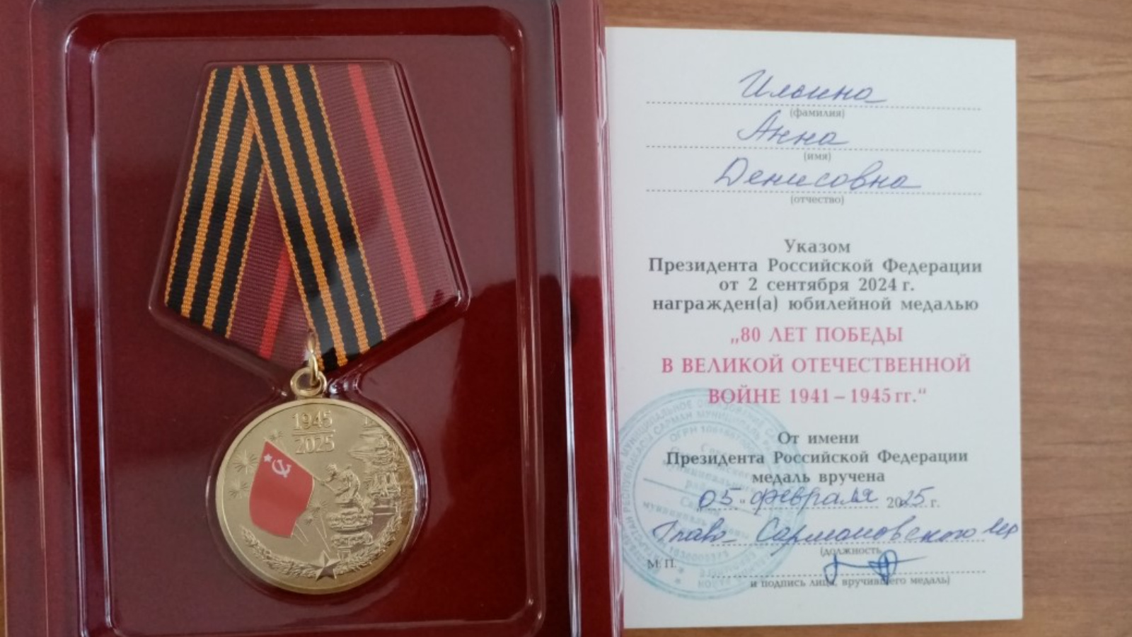 Ләке авылында тыл ветераннарына, “Бөек Ватан сугышында Җиңүнең 80 еллыгына” багышланган юбилей медальләре тапшырылды. Тыл ветераны Ильина Анна Денис кызын авыл җирлеге башлыгы Юрий Григорьевич Антонов котлады һәм юбилей медален тапшырды.