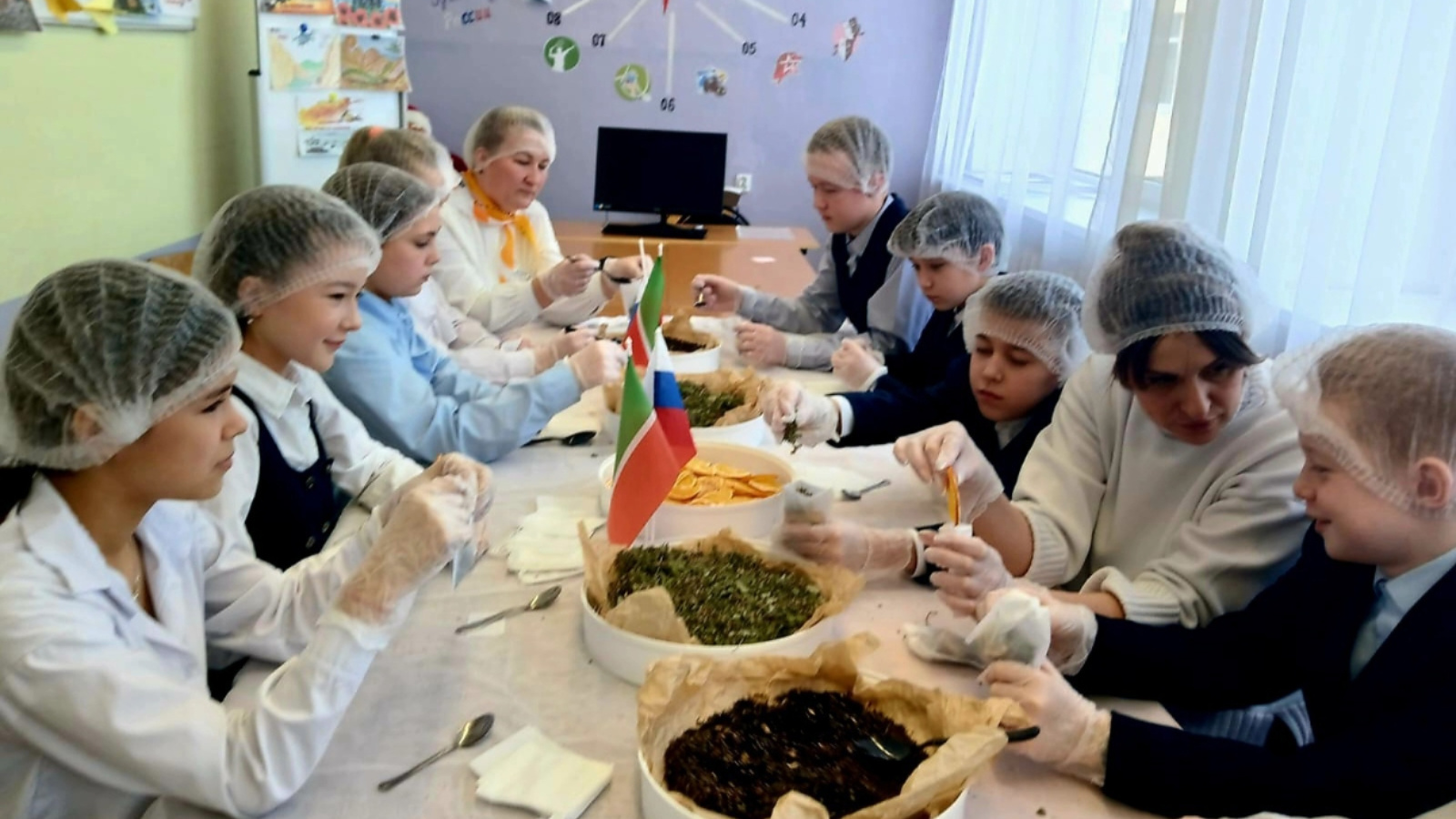 Тәрбия буенча директор киңәшчесе Габдрахманова Э.Ш. беренчеләрдән хәрәкәттә катнашучылар ,сыйныф җитәкчеләре Нәгыймуллина л. ф., Бадикова г. Ф. һәм балалар белән бергә Украинадагы махсус хәрби операциядә катнашучы солдатлар өчен үлән чәйен төргәкләүдә һәм төргәкләүдә катнаштылар.