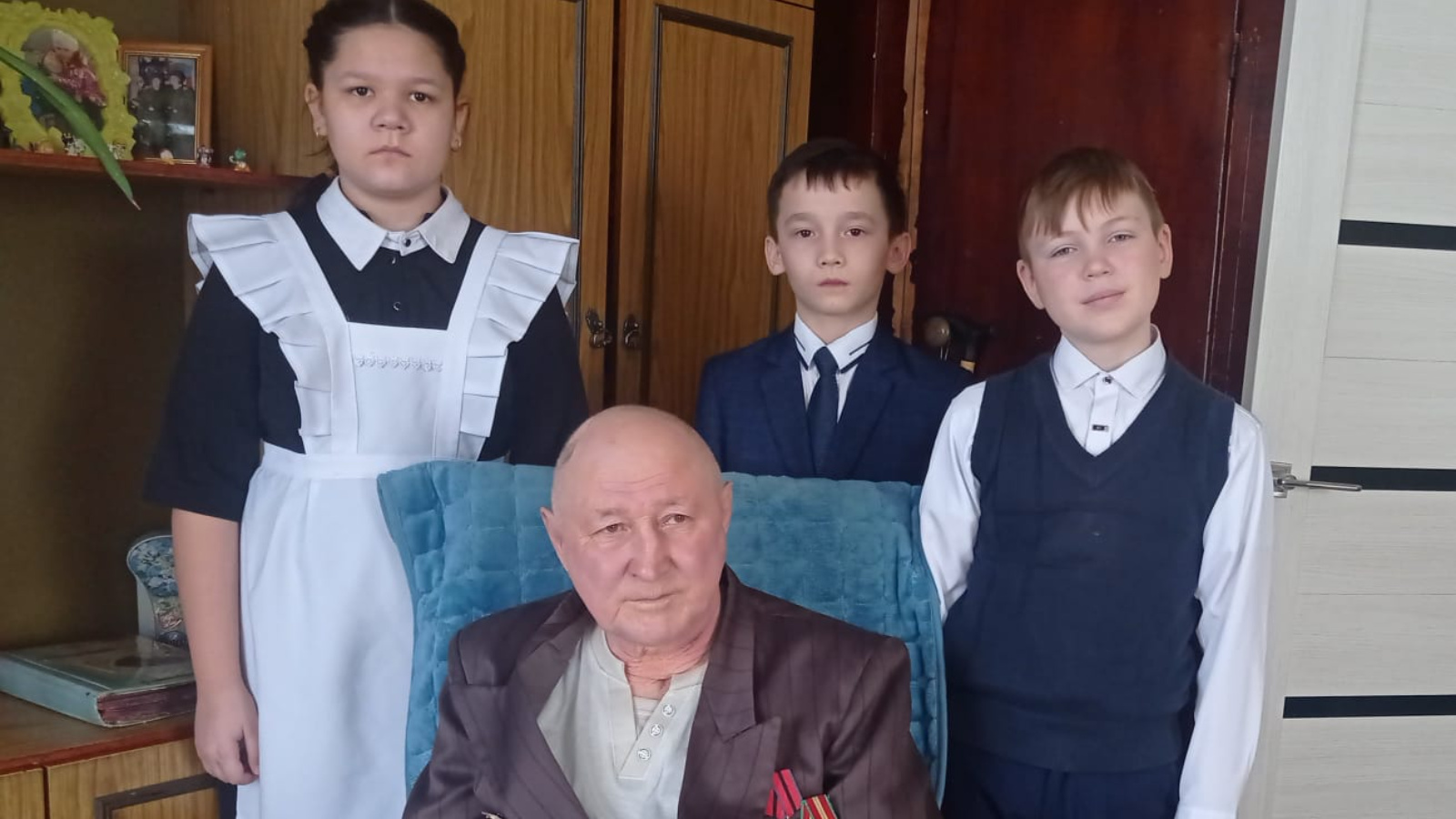 Очрашу ахырында укучылар ветеранга җылы каршы алуы өчен рәхмәт белдерделәр, якынлашып килүче Ватанны саклаучылар көне белән котладылар һәм үз куллары белән ясаган открытка бүләк иттеләр.