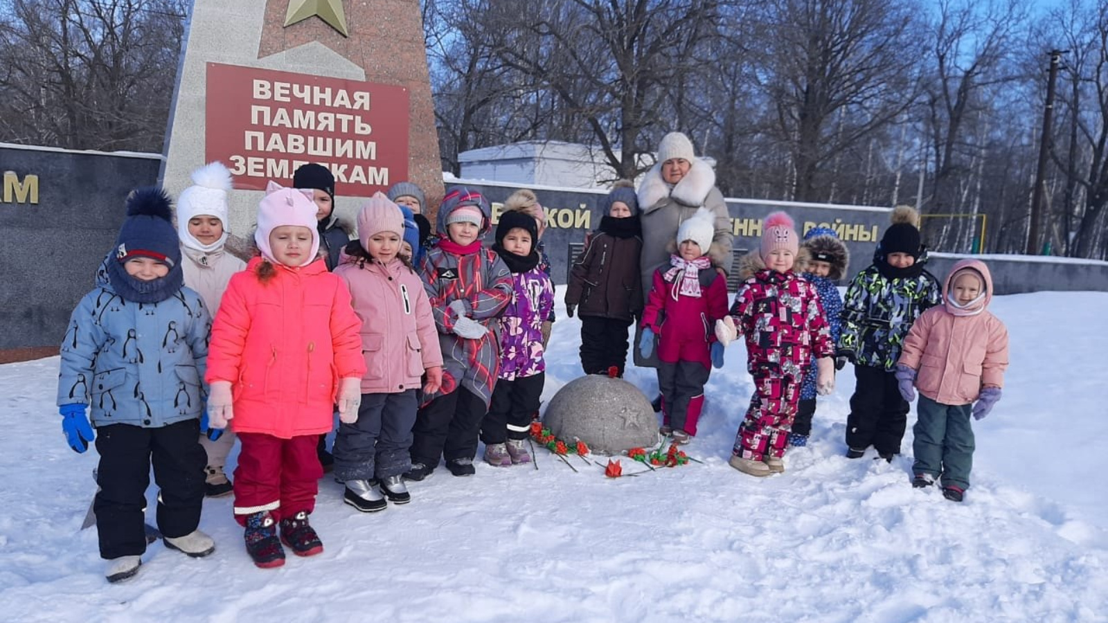 Өлкән төркем балалары Бөек Ватан сугышында һәлак булган сугышчылар һәйкәленә чәчәкләр салдылар. Бу-Ватанны саклаучыларга якты истәлек, шулай ук сугыш елларында сугыш кырларыннан әйләнеп кайтмаган, хәрби һәм гражданлык бурычын намус белән һәм батырларча үтәгән, үз иленең киләчәге хакына гомерләрен биргән һәркемгә тирән рәхмәт, олы ихтирам һәм рәхмәт белдерү.