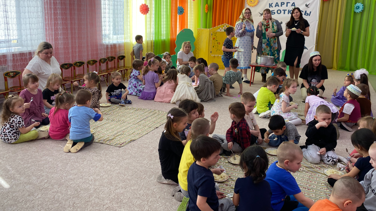 Татар телен өйрәтү буенча тәрбияче Рәхмәтова А.Ф. балаларны бәйрәмнең барлыкка килү тарихы белән таныштырды. Балалар шигырьләр сөйләделәр, кошлар турындагы табышмакларны чиштеләр һәм биеделәр. Бәйрәм азагында балалар ботка белән сыйландылар, һәм, әлбәттә, бу ботка белән кошларны сыйладылар.