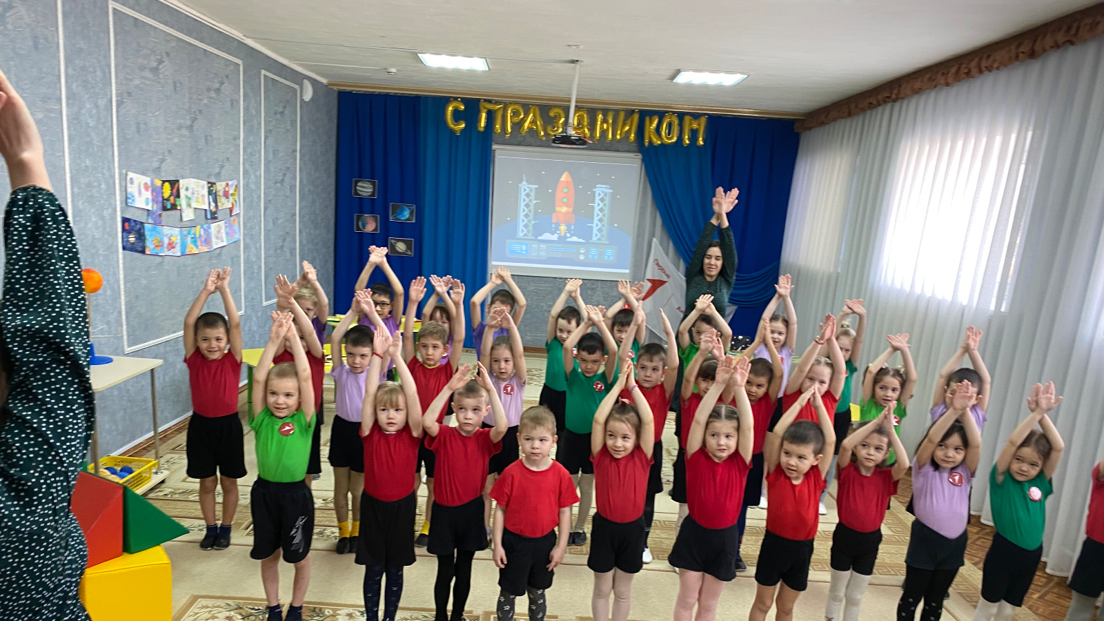 Тәрбиячеләр 2 нче урта мәктәпнең "Беренче хәрәкәт" активистлары белән берлектә космосның серле дөньясы турында бик күп кызыклы нәрсәләр сөйләделәр.