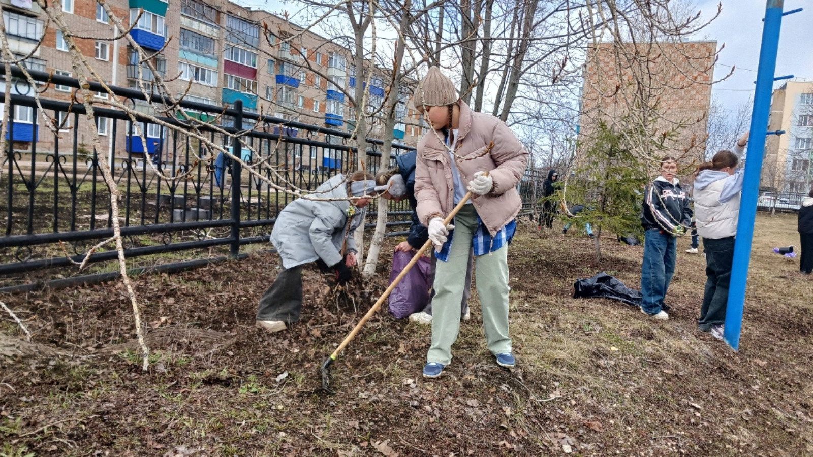 Өмәдә катнашучылар бердәм максат белән җыелдылар — безнең мәктәп ишегалдын чистарак һәм матуррак итү. Тырма, чүп капчыклары һәм яхшы кәеф белән коралланып, алар территорияләрне җыештырырга киттеләр.