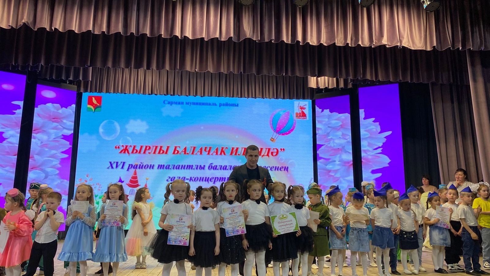 Сарман мәдәният йортында узган 2025 нче ел Бөек Җиңүнең 80 еллыгы, Россиядә һәм Татарстанда - Ватанны саклаучылар елы уңаеннан «Җырлы балачак илендә» XVI район сәләтле балалар бәйгесенең гала- концертында “Сандугач” балалар бакчасы нәни йодызчыклары торле номинацияләрдә җиңү яуладылар.
