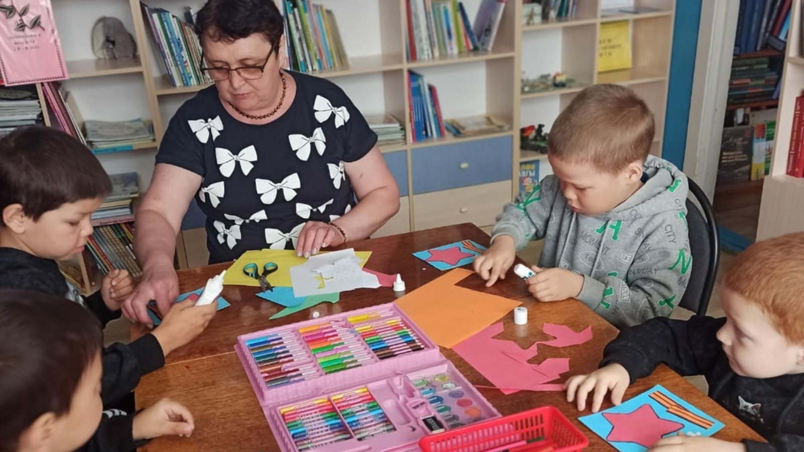 Кәүҗияк авылы "Кояшкай" балалар бакчасында авыл китапханәсе белән берлектә Бөек Җиңүнең 80 еллыгына багышланган "Библиотөн- 2025"Бөтенроссия акциясенә мастер-класс узды.