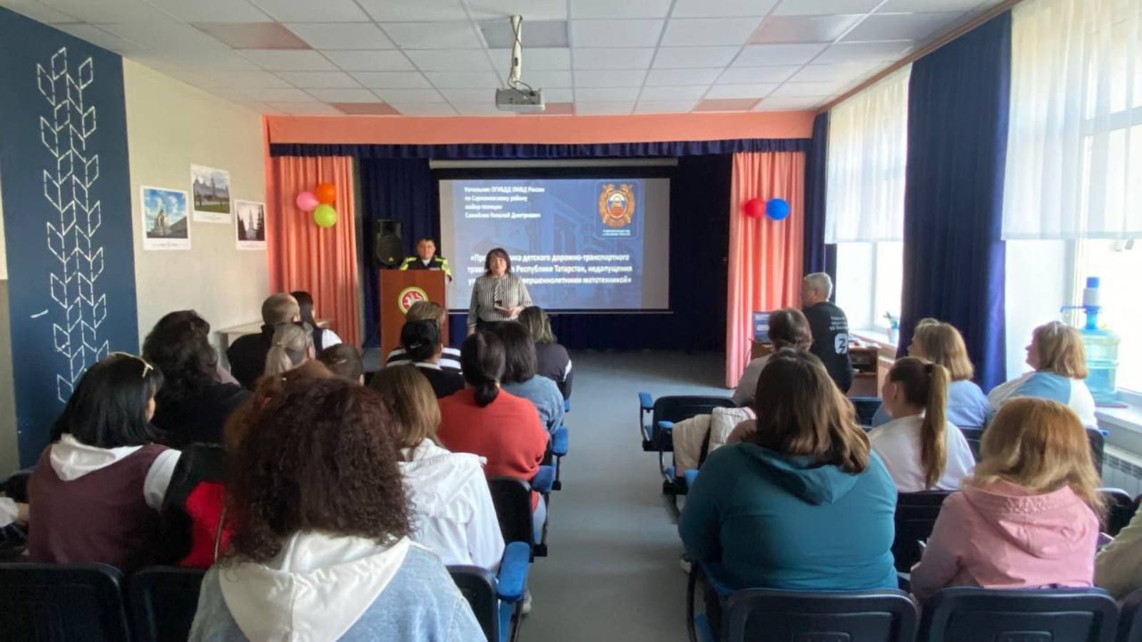 Мәктәп директоры Л.Р. Газимова 2024-2025 уку елында белем бирү эшчәнлеген оештыруга һәм куркынычсызлык чараларын үтәүгә тукталды. Лилия Рәис кызы ата-аналарга 11 сыйныф укучыларының мәктәп тормышының мөһим этабы бусагасында булуын искәртте. Булачак имтиханнарга әзерлек мәсьәләләре балаларның үзләре һәм укытучылар өчен генә түгел, ә ата-аналар өчен дә актуаль. Җыелышка РФ ЭЭМның Сарман районы буенча ЮХИДИ идарәсе җитәкчесе Самойлов Николай Дмитриевич чакырылган иде, ул юлларда куркынычсызлык һәм юл хәрәкәте кагыйдәләрен үтәү зарурлыгы турындагы мөһим мәгълүмат белән уртаклашты.