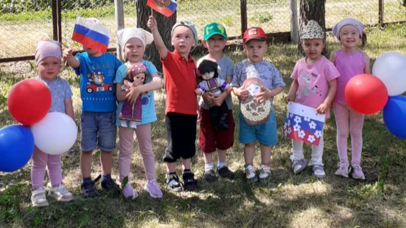 Россия көнен бәйрәм итү уңаеннан балалар бакчасында түбәндәге чаралар үткәрелде: төркемнәрдә тәрбиячеләр «Россия флагы», «Россия гербы» темаларына әңгәмәләр үткәрделәр, Россия флагы, герб рәсемнәре төшерелгән иллюстрацияләр карадылар, «Россия флагы» темасына зурлар төркемендә рәсем сәнгате буенча дәресләр, төркемдә балалар рәсемнәре күргәзмәсе үткәрелде