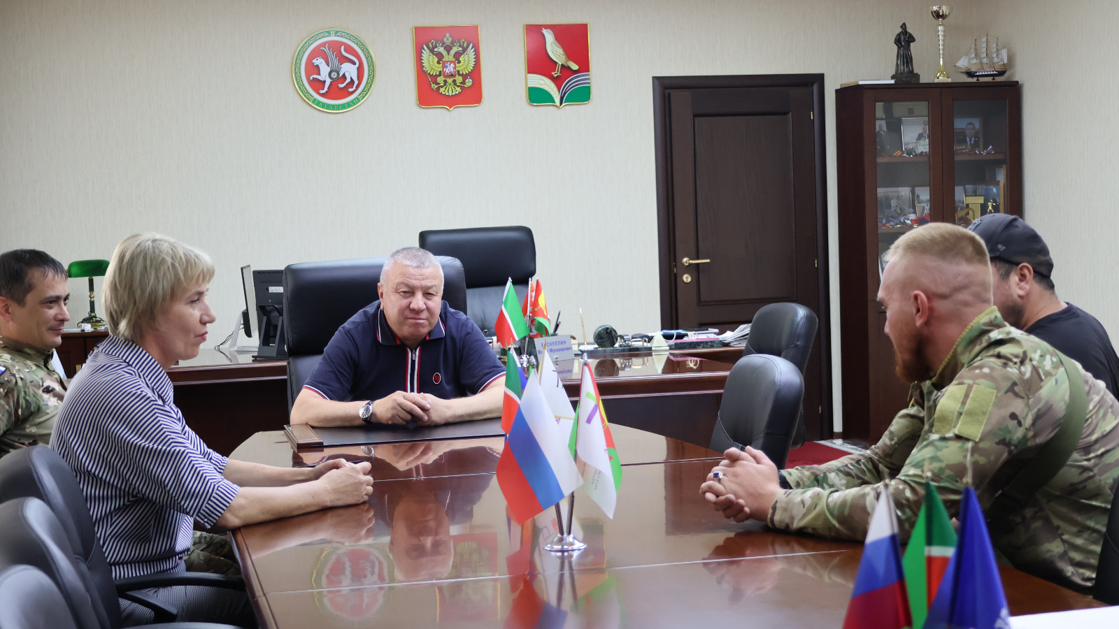 Сарман муниципаль районы Башлыгы Фәрит Мөнәвир улы Хөснуллин махсус хәрби операция зонасында якташлары өчен гуманитар ярдәм җыю белән шөгыльләнүче волонтер егетләр белән очрашты.