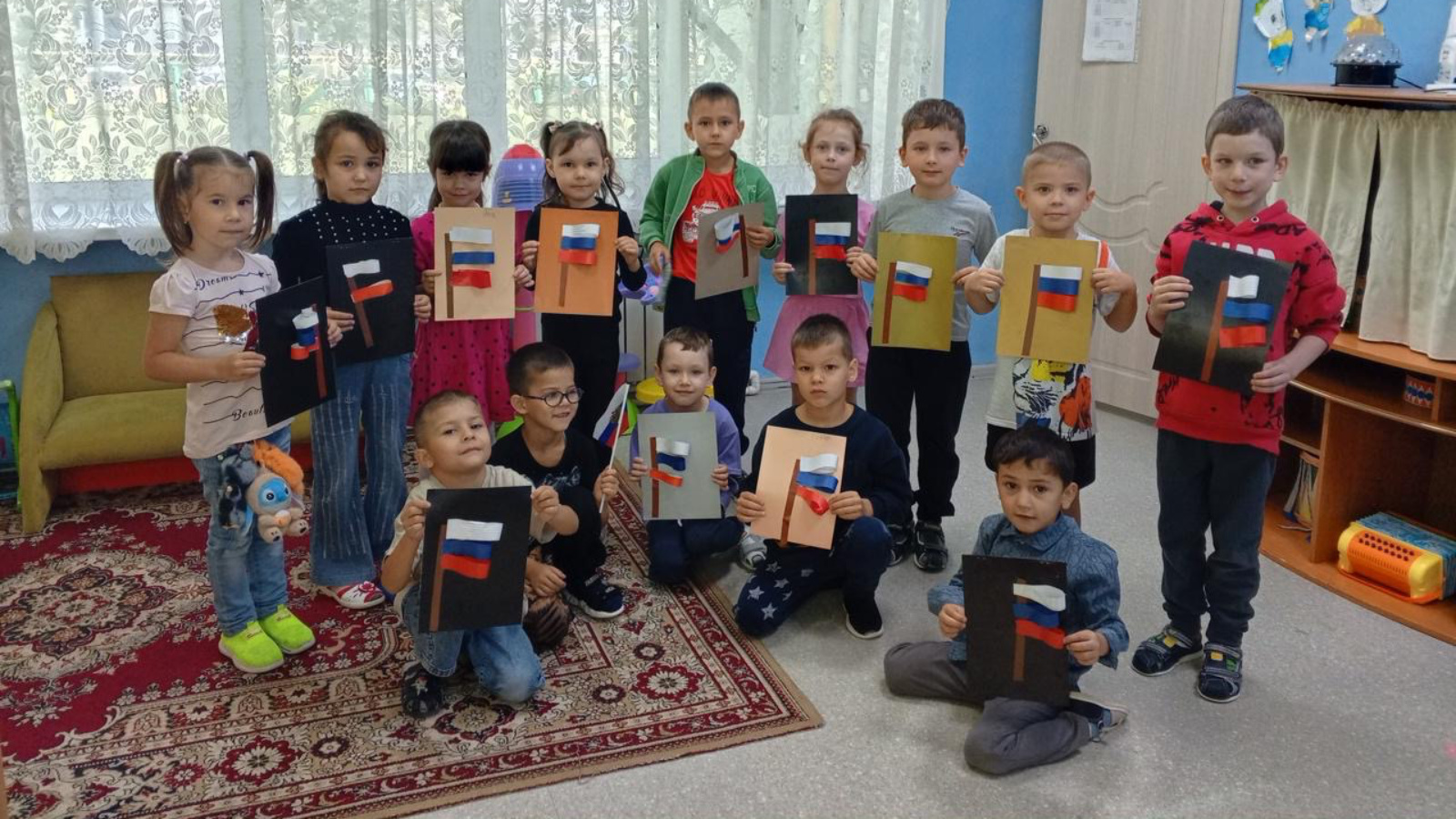 Бу бәйрәм-сабыйларыбызга илебезнең төп символларының берсе турында сөйләү, аларда патриотлык һәм Ватаныбыз өчен горурлык хисе тәрбияләү өчен менә дигән сәбәп. Тәрбияләнүчеләребез өчен кызыклы һәм танып белү чаралары әзерләдек. Тәрбиячеләр белән бергә балалар россия триколоры төсләренең нәрсә аңлатуын һәм ни өчен әләмнең һәр гражданин өчен шулкадәр мөһим булуын белделәр. Балалар Россия флагы аппликациясен бик теләп ясадылар, төсләрне тырышып сайлап алдылар, зур илнең кечкенә символын булдырдылар, флагны яраткан биләреннән төзеделәр. Мондый чаралар балаларда кечкенәдән үк дәүләт символикасына хөрмәт тәрбияләргә һәм үз Ватаннарына мәхәббәт тәрбияләргә ярдәм итә.