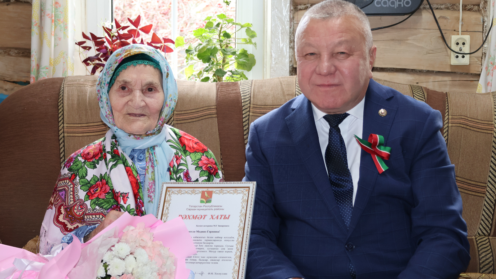 Бүген Сарман авылында яшәүче Закирова Мәдинә Гәрәй кызы үзенең 90 яшьлек юбилеен билгеләп үтә. Юбилярны Сарман муниципаль районы Башлыгы Хөснуллин Фәрит Мөнәвир улы котлады, Рәхмәт хаты һәм истәлекле бүләкләр тапшырды. Барлык катнашучылар ветеранга сәламәтлек һәм иминлек теләделәр.