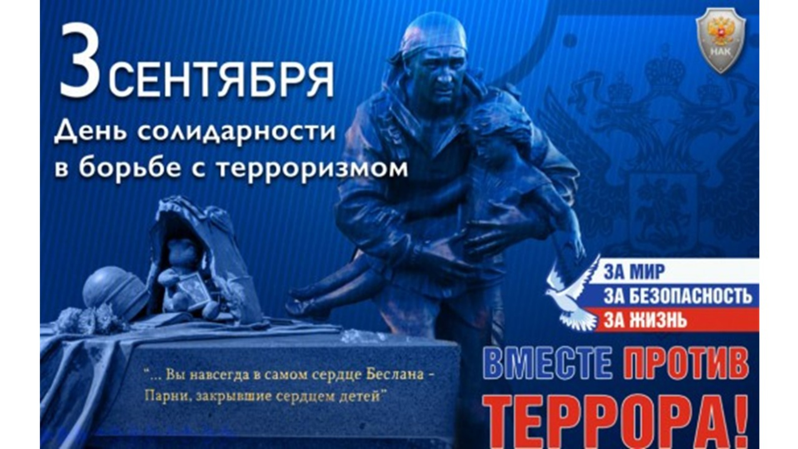 3 сентябрьдә Россиядә Террорчылыкка каршы көрәштә теләктәшлек көне билгеләп үтелә. Истәлекле дата 2005 елда билгеләнгән һәм Беслан шәһәрендәге фаҗигале вакыйгалар белән бәйле.