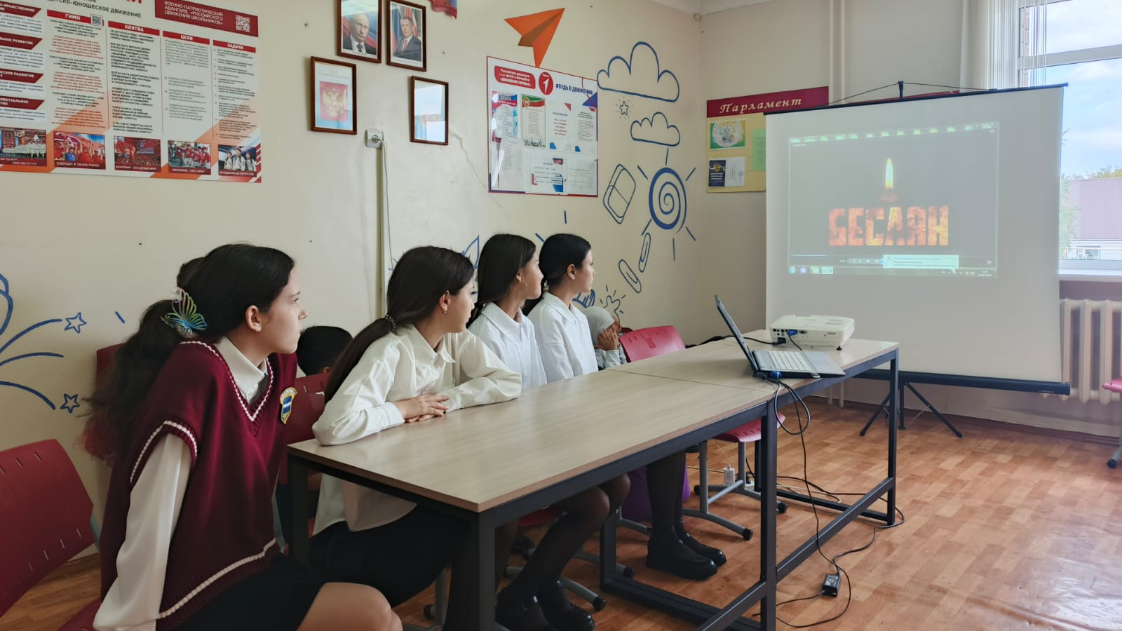 3 нче сентябрьдә тәрбия һәм балалар иҗтимагый оешмалары белән хезмәттәшлек буенча директор киңәшчесе Граханцева Е.Р. "Беренчеләр хәрәкәте" балалар оешмасы активисты белән бергә "Җәлил гимназиясе"нең 7 нче В сыйныфы укучылары белән «Террорчылыкка каршы көрәштә теләктәшлек көне» темасына әңгәмә үткәрделәр һәм Бесландагы фаҗигале вакыйгаларга багышланган документаль фильм карадылар. Фильм бу фаҗигане кичергән кешеләрнең батырлыгы һәм рухи көче, авыр ситуацияләрдә бердәмлек һәм үзара ярдәмләшүнең мөһимлеге турында искә төшерде. Фильмны караганнан соң, фикер алышу булды, анда балалар үзләренең фикерләре һәм хисләре белән уртаклаштылар.