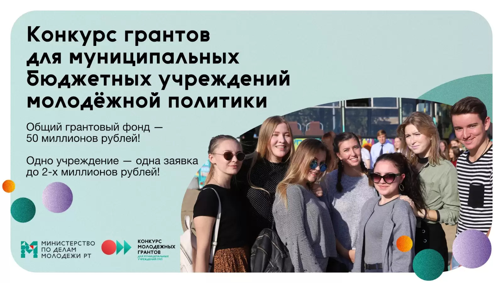 Татарстан Республикасы Яшьләр эшләре Министрлыгы яшьләр сәясәтенең муниципаль учреждениеләре арасында яшьләр сәясәте өлкәсендә социаль әһәмиятле проектларны гамәлгә ашыруга грантлар конкурсы оештыра. 2024 елда грант алучылар итеп 37 муниципаль берәмлектән 69 учреждение билгеләнде.