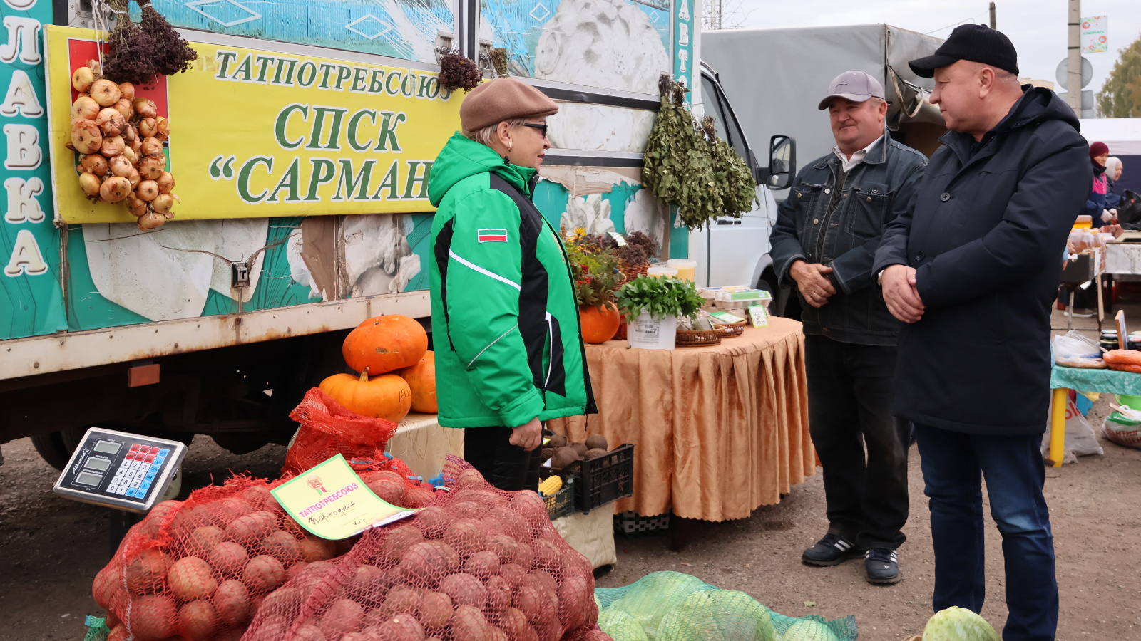 Ярминкәдә Сарман муниципаль районы Башлыгы Фәрит Мөнәвир улы Хөснуллин булды, ассортимент һәм бәяләр белән танышты.