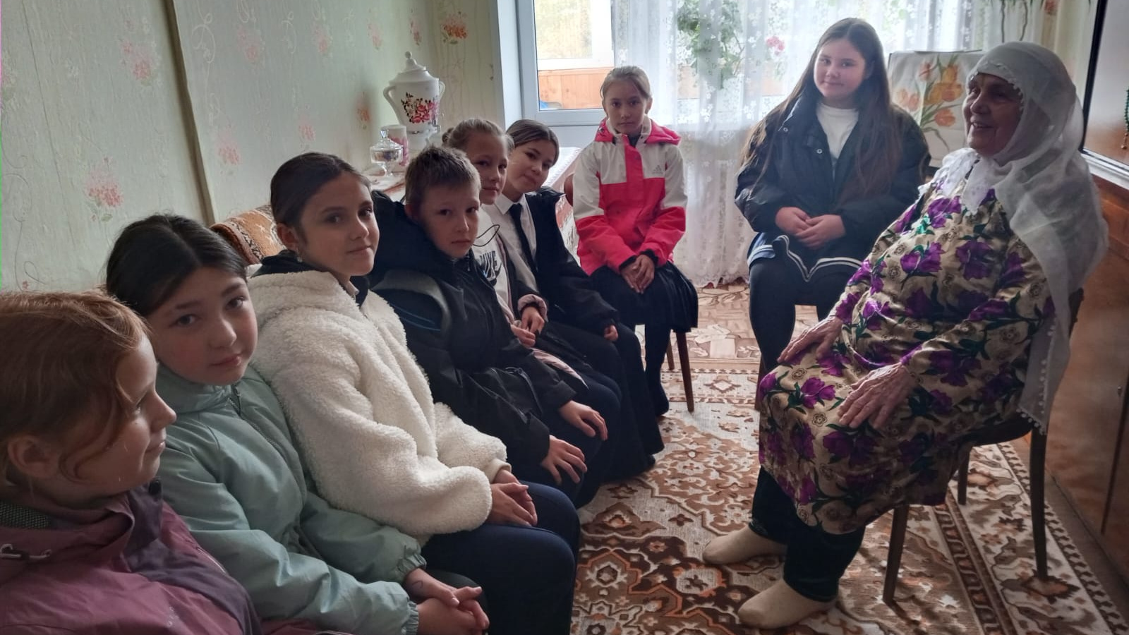 МБГББУ «Җәлил гимназиясе» нең 5 «А» сыйныф укучылары сыйныф җитәкчесе Гарипова М.М. җитәкчелегендә Җәлил учкомбинатында күп еллар хезмәт укытучысы булып эшләгән 90 яшьлек Шәяхмәтова Мөнирә Солтан кызының хәлен белештеләр. Балалар аны Өлкәннәр көне һәм якынлашып килүче Укытучылар көне белән котладылар, хуҗалыкта булыштылар, ә алмашка җылы кабул итү һәм чәй эчү алдылар. Мондый очрашулар өлкән буынга игелек, хөрмәт һәм игътибар тәрбияли.
