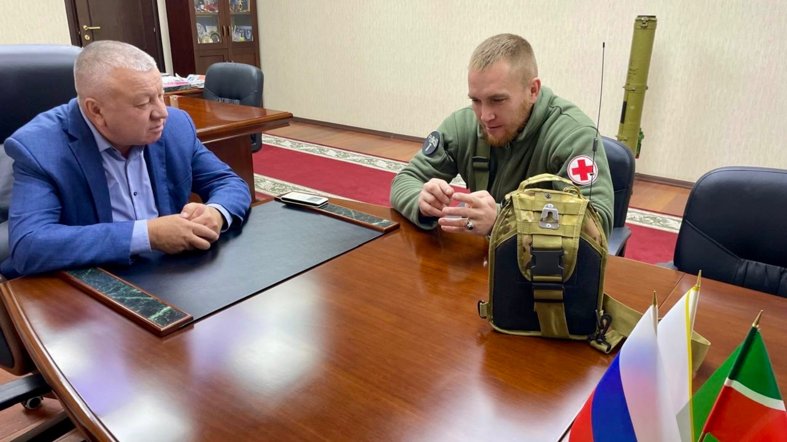 Сарман муниципаль районы башлыгы Фәрит Мөнәвир улы Хөснуллин бүген волонтер Айнур Вәлиев белән очрашты. Ул берничә тапкыр гуманитар ярдәм белән махсус хәрби операция зонасына чыкты. Бу юлы Айнур Бөек Ватан сугышы һәм туган якны өйрәнү музеена трофей экспонатлар алып кайтты.