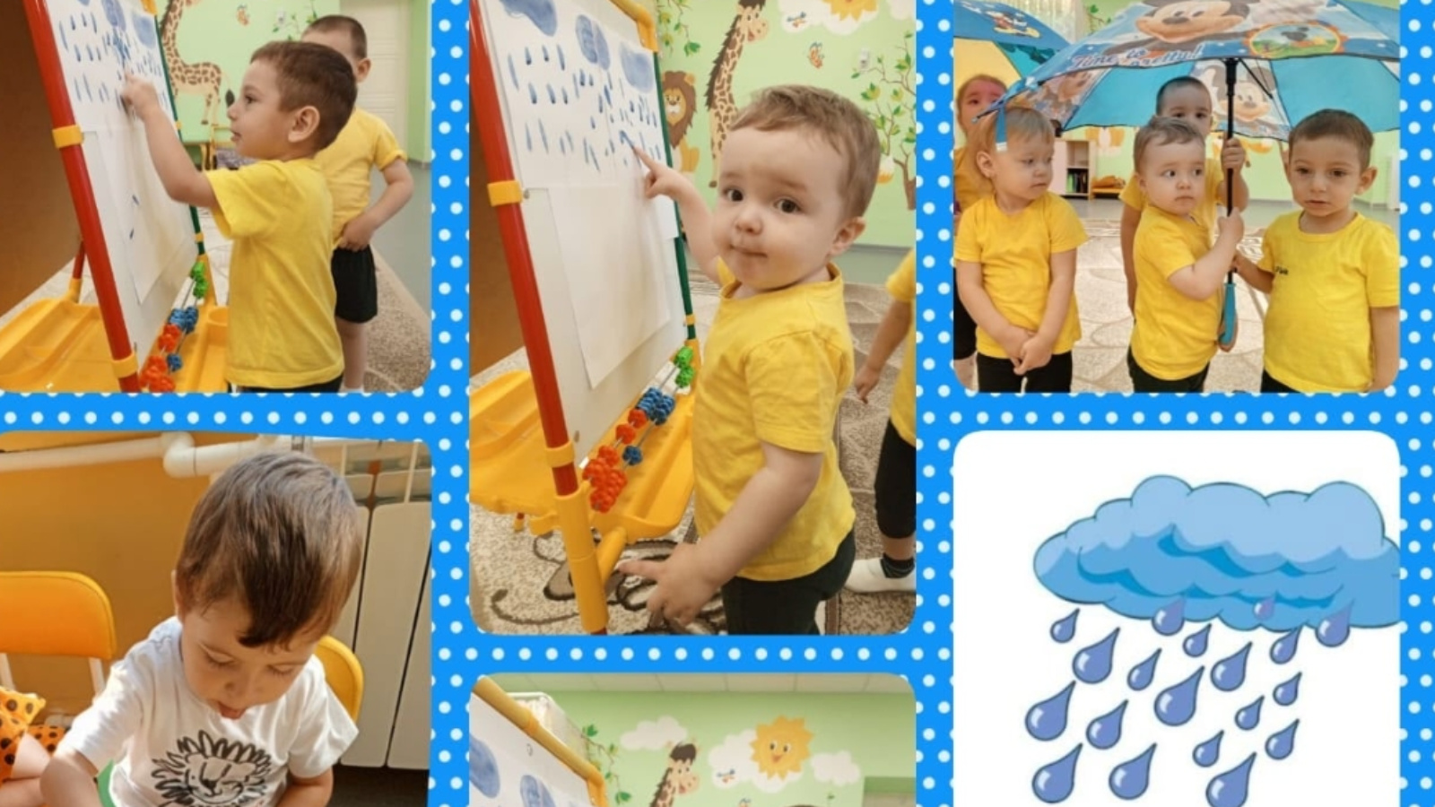 Кечкенә төркем балалары "Яңгыр ява" дигән темага традицион булмаган алым белән рәсем ясадылар. Сәнгать эшчәнлеге балага зур сөенеч китерә, үзенең рәсеме белән соклану хисе туа. Рәсем шөгыле кызыклырак үтсен өчен эшне төрле формада, кызыклы темаларга үткәрергә тырышабыз. Ижат бала өчен нәтиҗә түгел, ә процесс. Чын күңелдән әйтелгән мактау сүзләре балага үзен иҗади яктан күрсәтергә ярдәм итә.