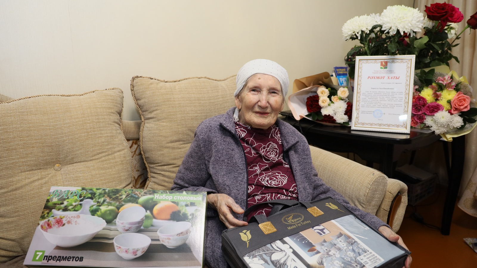 Күпьеллык хезмәте һәм актив тормышчан позициясе өчен тирән хөрмәт йөзеннән Сарман муниципаль районы башлыгы Хөснуллин Ф.М. Ләлә Нәкыйповнага Рәхмәт хаты һәм истәлекле бүләк тапшырылды.
