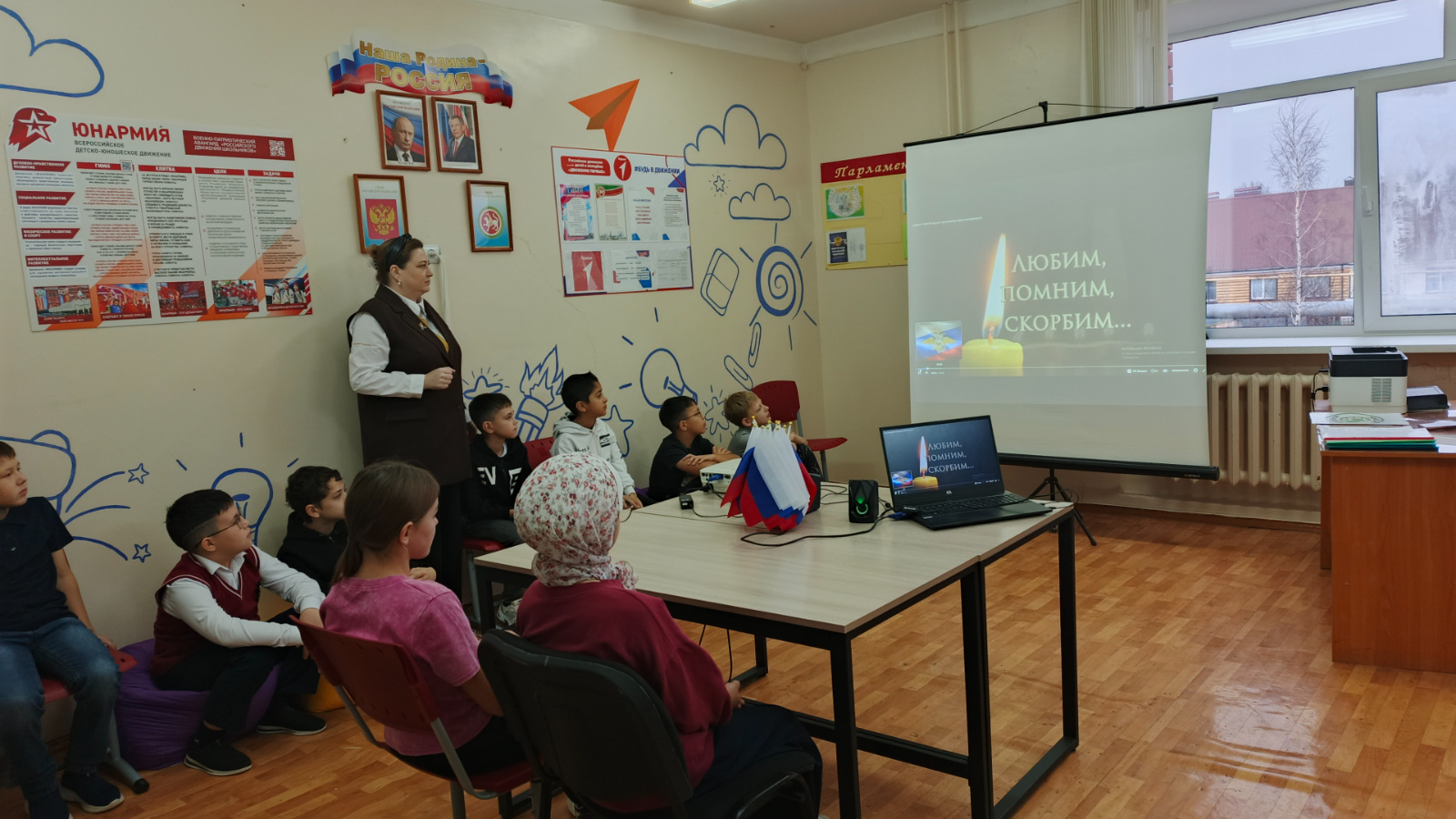 8 нче ноябрь көнне Россия Федерациясе Эчке эшләр органнарының һәлак булган хезмәткәрләрен искә алу көненә багышланган чаралар кысаларында тәрбия буенча директор киңәшчесе Е.Р. Граханцева МБГББУ «Җәлил гимназиясе» ндә укучылар белән әңгәмә үткәрде. Балалар хезмәт бурычын үтәгәндә үз гомерләрен биргән полиция хезмәткәрләренең батырлыгы һәм фидакарьлеге турында документаль фильм карау өчен бергә җыелдылар. Фильмны караганнан соң, укучылар күргәннәре турында фикер алыштылар, хезмәтнең әһәмияте һәм һәр хезмәткәрнең җәмгыять алдында җаваплылыгы турындагы фикерләре белән уртаклаштылар. Бер минутлык тынлыкка аерым игътибар бирелде, аның барышында укучылар үз гомерләре бәрабәренә Ватаныбыз иминлеген саклаучыларның якты истәлеген хөрмәтләделәр.