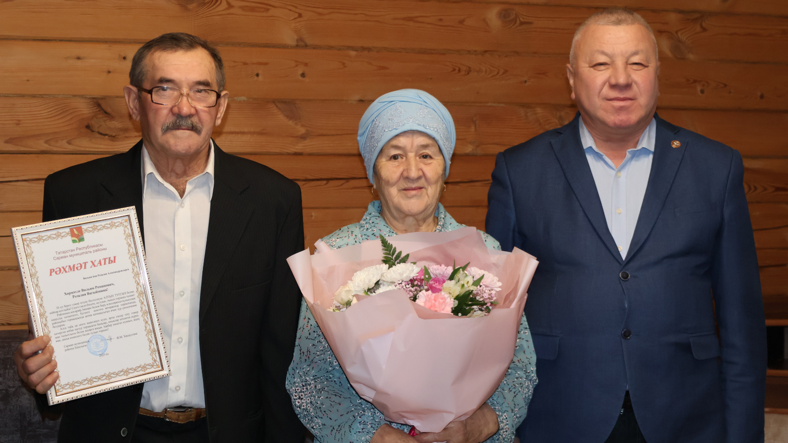 Юбилярларга муниципаль район Башлыгының Рәхмәт хаты һәм истәлекле бүләкләр тапшырылды.