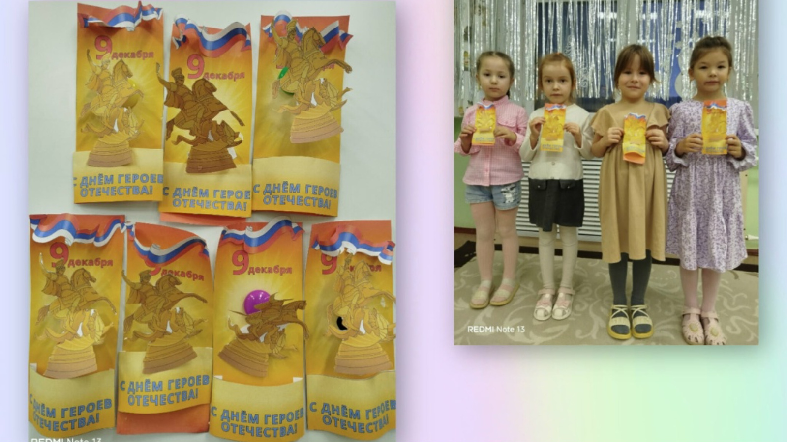 Бүген, 9 декабрь көнне, балалар бакчасында Ватан Геройлары көненә багышланган чара узды. Балалар илебезне саклаучыларның каһарманлыгын искә төшерүче бәйрәмнең әһәмиятен белделәр. Тәрбиячеләр ватанпәрвәрлек , үткән һәм хәзерге геройларга хөрмәт тәрбияләүнең мөһимлеген ассызыкладылар, чын геройлар хәрбиләр генә түгел, ә көн саен игелекле эшләр башкаручы гади гражданнар да икәнлегенә төшенделәр. Балалар, чын геройлар үрнәгеннән илһамланып, шундый ук кыю, тәртипле, башкаларга ярдәм итә алырлык кешеләр булырга омтылуларын белдерделәр.