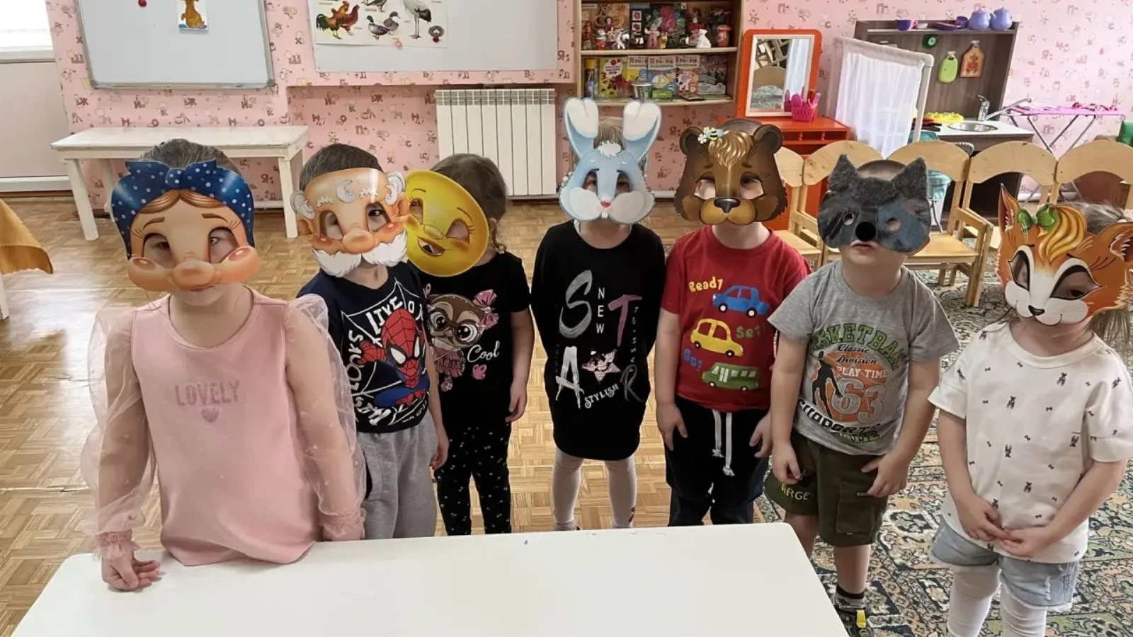 Балалар вакытлыча урман җәнлекләренә, бабайга, әбигә һәм, әлбәттә, алсу йөзле төп геройга әверелделәр. Бу булды: