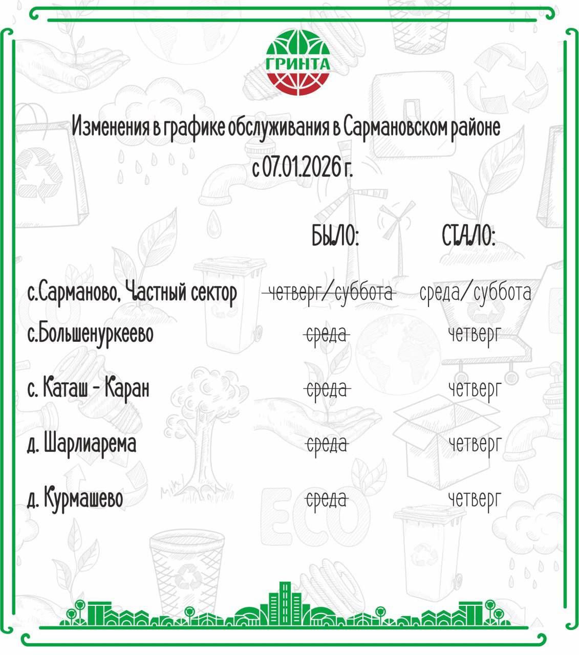 Күрсәтелгән авылларда яшәүчеләр өчен каты көнкүреш калдыкларын чыгару графигы яңартылды.